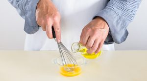 - En un tazón, mezcle jugo de naranja, mostaza, aceite de oliva (4 Art. l.), sal y pimienta.