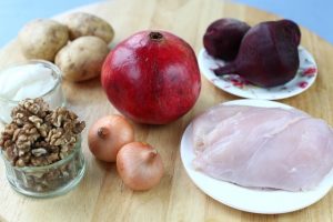 - Hervir verduras (papas, remolachas y zanahorias). Enfriarlo todo pelar y rallar en un rallador de verduras. Separar en separar capacidades.