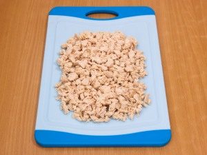 Ensalada dietética a base de filete de pollo hervido con original y sabor inusual. Puedes usar filete de pollo como carne o pavo Las manzanas para este plato deben seleccionarse agridulces o agrio Puedes llenar la ensalada con crema agria espesa o casera mayonesa casera de aceite de oliva según lo siguiente Mayonesa “casera” con aceite de oliva