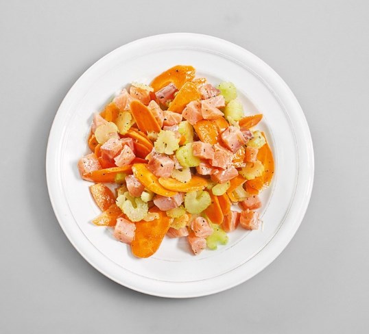 - Corte una capa dura con un cuchillo afilado de los tallos de apio, luego picar finamente. Añadir al salmón.