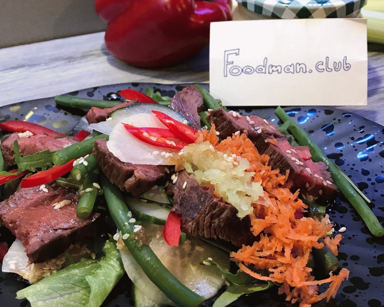 �Buscas algo ligero pero satisfactorio? No alto en calorías y siempre con carne? Entonces esta receta para hacer una deliciosa ensalada en casa para usted! �Verduras frescas, carne picante, aderezo al estilo asiático!