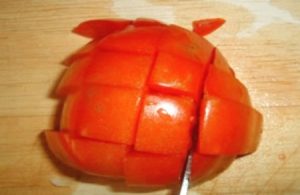 - Mis tomates y cortados en cubos.
