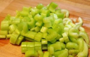 - Lavamos los tallos de apio, luego los cortamos en pequeños piezas