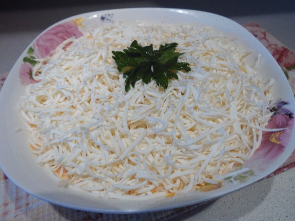 - Frote los huevos en un rallador fino, sal, ponga manzanas y Engrasar con mayonesa.