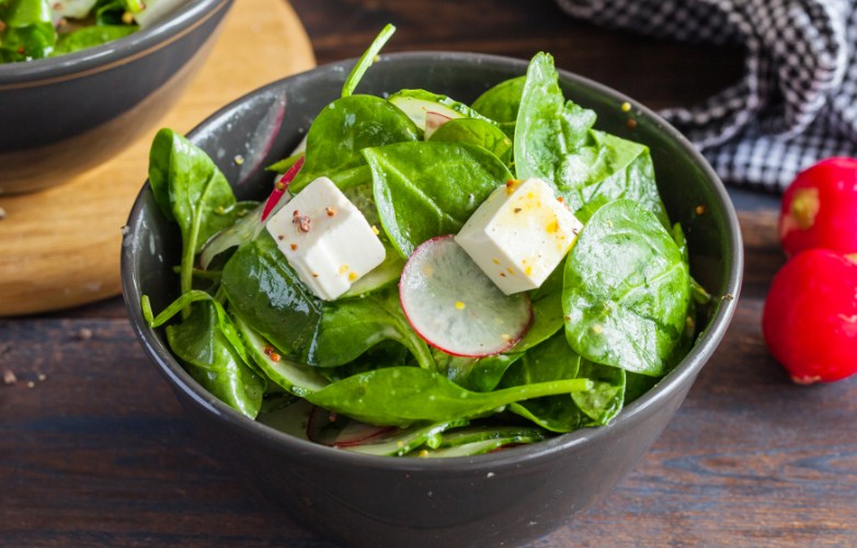 Deliciosas espinacas y rábanos con aderezo de mostaza fácil cocina en casa de acuerdo con esta receta. Esta lata de ensalada saludable hacer por todos los que siguen su figura y se adhieren a nutrición adecuada �La merienda perfecta!