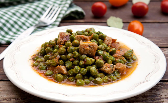 Para diversificar su dieta diaria, intente cocinar delicioso guiso de cerdo casero con guisantes verdes frescos. Tal caliente se puede servir con cualquier guarnición. Hacer puré de papas o arroz hervido