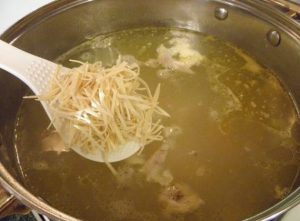 - Vierte los fideos en la sopa. Cocine a fuego lento 30 minutos antes disponibilidad Retirar del fuego, dejar reposar la sopa debajo de la tapa durante minutos 10)