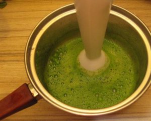 - Para la preparación de fideos verdes, amase la misma masa, solo en lugar de agua, agregue jugo caliente o haga puré de verduras.