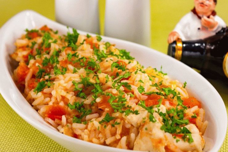 La receta para una cena rápida y sabrosa en casa, dos en uno es una guarnición empapada en jugo de carne y un delicioso filete de pollo. El arroz se puede reemplazar con trigo sarraceno.