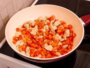 - Filete de pollo o pavo cortado en trozos pequeños.
