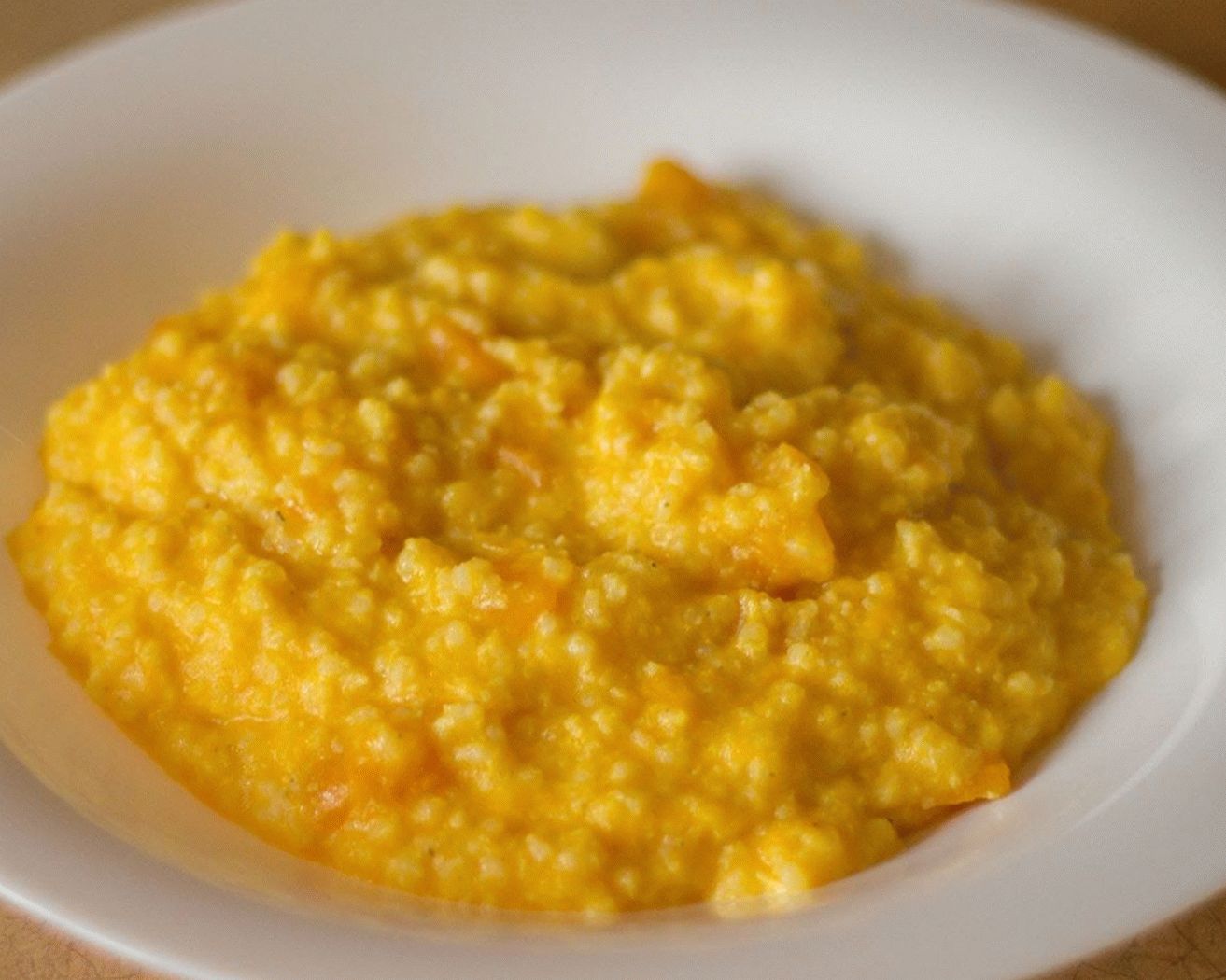Después de 20 minutos, machaque la calabaza, viértala con leche, pon el resto de la mantequilla, vierte arroz, mijo, azúcar. Agregar una pequeña cantidad de sal