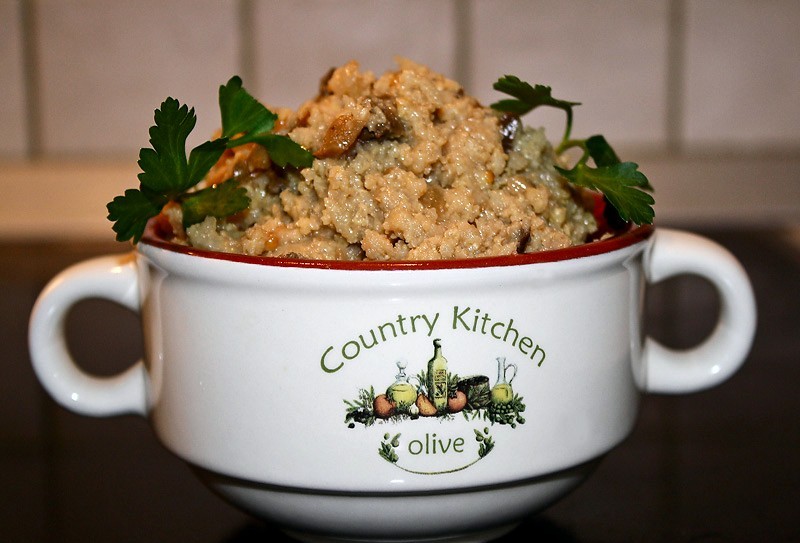 Una gran receta casera para deliciosas gachas de trigo, que va bien con champiñones secos.