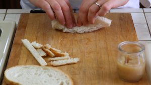 Una versión muy simple de deliciosas galletas caseras. Es aconsejable que el pan esté hecho solo de harina, agua, levadura y un poco de sal, es decir Necesitas comprar pan orgánico.