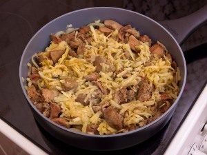 - Agregue las manzanas ralladas al horno, ligeramente saladas, fría Diez minutos más.
