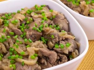 - Al servir, espolvorea el hígado de pollo con verde finamente picado cebollas