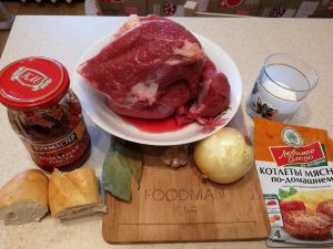 - Cortar la carne, cebolla, ajo, pan. Pasar por una picadora de carne. Mezclar bien