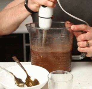 - Batir todos los ingredientes a fondo con una licuadora. Debería obtener mezcla homogénea