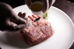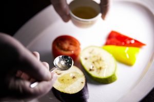- Transferimos el lomo con verduras al plato, servimos a continuación la salsa