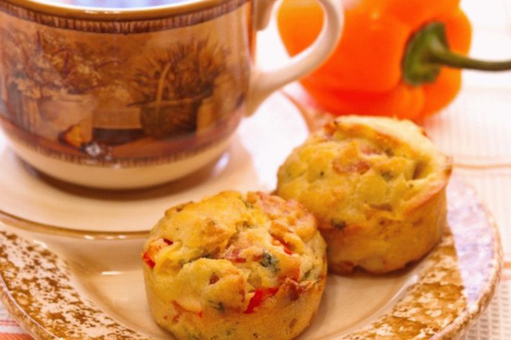 Vamos a cocinar deliciosas magdalenas en casa para el té o como aperitivo con Es bueno con tocino, y también mono para hacer con jamón, Balyk, carbonato.