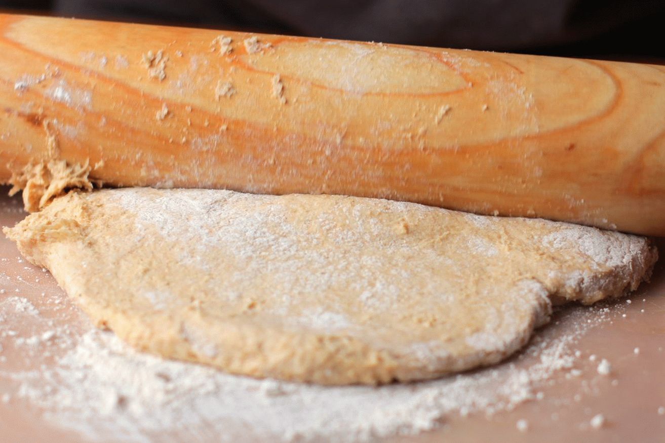 - Divide la masa en partes iguales. Rodar el mismo delgado capas Con un cuchillo, corta las capas en forma rectangular.