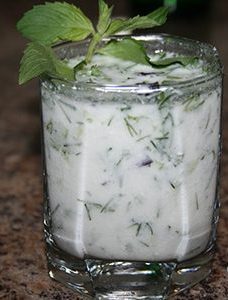 - Vierta agua con gas fría y yogur. Mezclar y servir a la mesa.