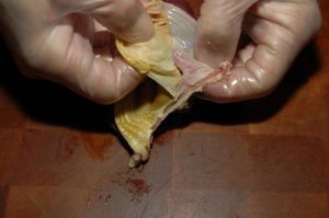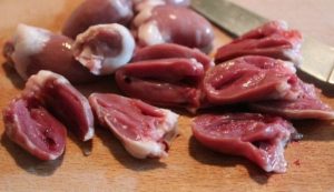 - Enjuague los despojos de pollo con agua, separe los ventrículos, sin película amarilla