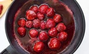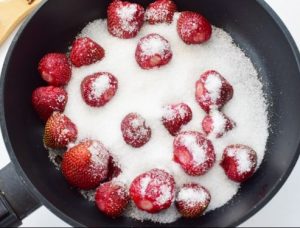- Calentamos la sartén, agregamos azúcar y fresas. Cocinar hasta disolviendo el azúcar a fuego medio.