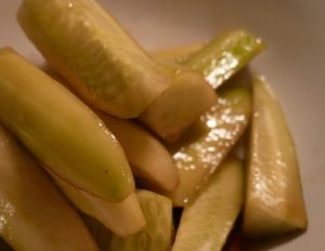 - Freír los pepinos preparados en la segunda parte de la mantequilla. 10 minutos