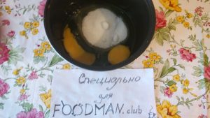 - En un tazón, bata los huevos con la batidora con azúcar, luego agregue aceite de girasol y leche, mezclar.
