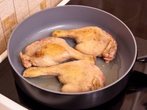 - Freír los patos en aceite vegetal caliente en una cacerola. piernas en ambos lados hasta que estén doradas.