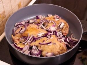 - Agregue la cebolla, picada en medio aros, agregue un poco de sal y apague cerrando la tapa durante diez minutos.