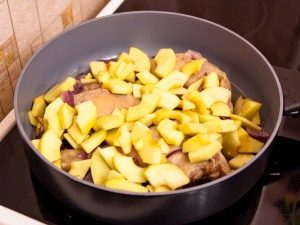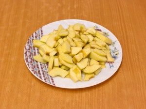 - Agregue las manzanas, córtelas en trozos pequeños, continúe Extienda el forro por otros diez minutos.