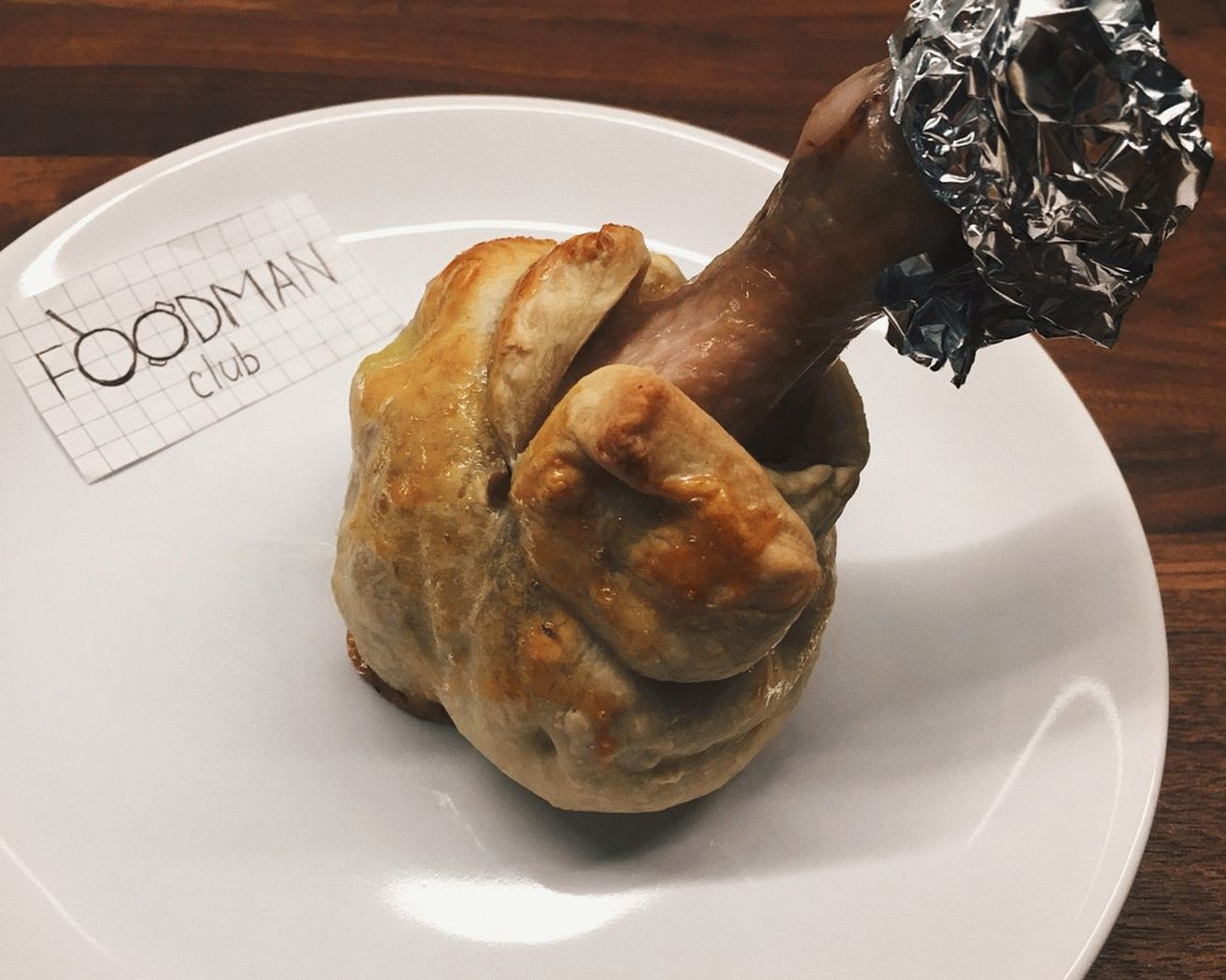 - Por cada cuadrado de masa, coloque un pastel plano enrollado de podar, cubrir con puré de papas, poner la pierna y envuelva la masa alrededor de las piernas, átela con una soga, abríguese yema y poner en una bandeja para hornear, engrasada. En el horno (180) en 30 minutos Buen provecho!
