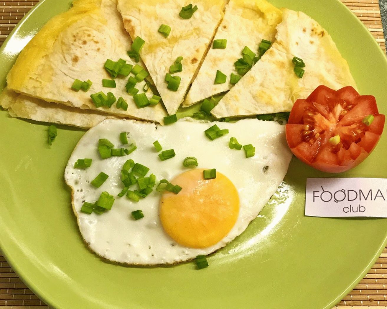 - Freír los huevos fritos ordinarios. Cambiamos en un plato a queso pan de pita