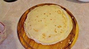 - Con un batidor, mezcle los huevos, la sal, 1 cucharada. l azucar vierta leche tibia y vuelva a batir. Agregue la harina tamizada con polvo de hornear, batir la masa nuevamente. Verter en aceite vegetal y hornear panqueques en una sartén caliente.
