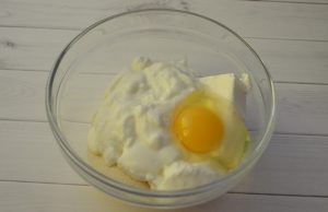 - Agregue yogur y huevos. Mezcle todo hasta que quede suave.