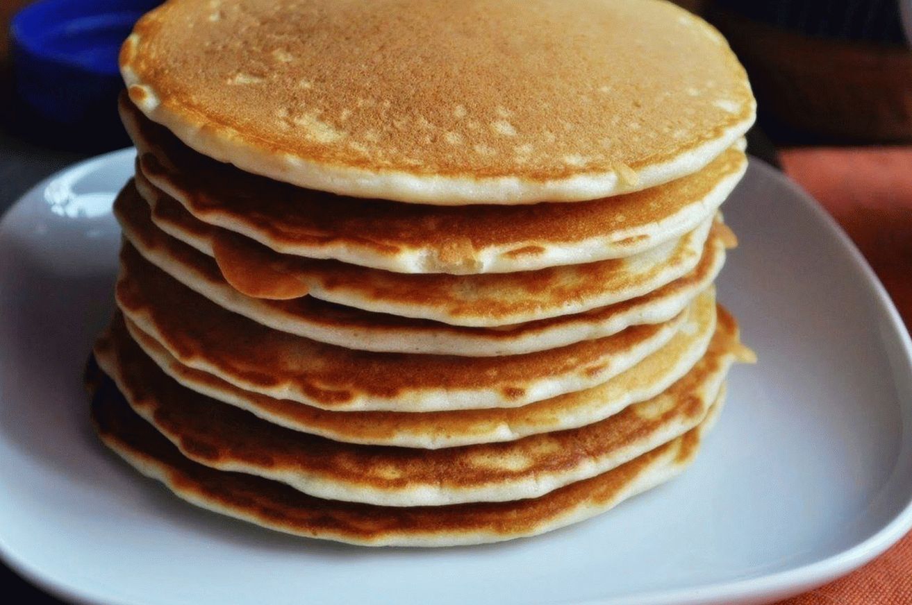 Los panqueques son algo entre panqueques y panqueques, aireado, sabroso y con una estructura porosa. Mejor cocinero Panqueques en casa en leche y servir con ingredientes dulces: leche condensada, mermelada, pasta de chocolate, miel o tradicionalmente con jarabe de arce.