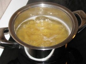 - Hervir la pasta en agua hirviendo con sal según las instrucciones.