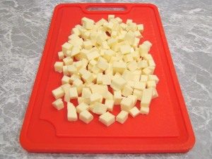 - Cortar la mozzarella en cubos pequeños.