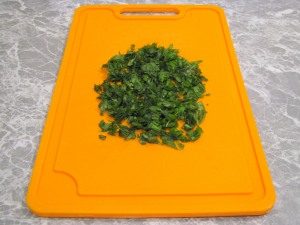 - Lave la albahaca, séquela con toallas de papel y finamente. picarlo
