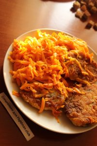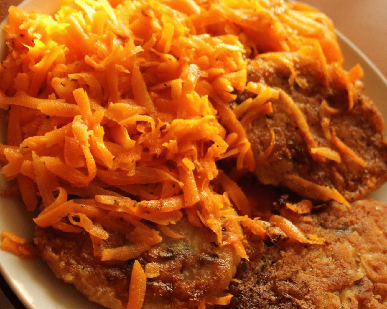 - Estofado de zanahorias ralladas en aceite junto con cebolla. Porciones Porciones con chuletas Buen provecho!