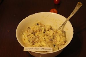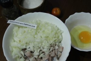 - Pique finamente el filete con un cuchillo o en una licuadora (no muela hasta carne picada). Picar finamente la cebolla y ponerla en el pescado. Agrega un huevo sal con pimienta al gusto. Mezcla todo bien. Hacemos chuletas, empanado en harina o pan rallado.