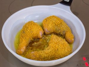 - Luego freír las piernas en aceite precalentado sartén, en ambos lados, hasta que estén crujientes.
