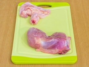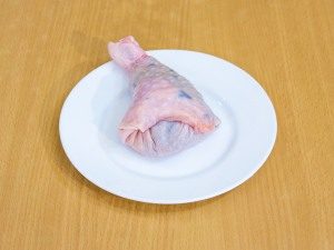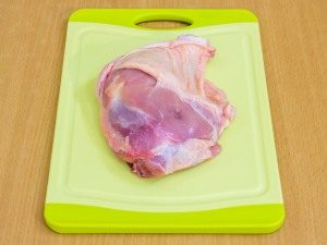 - Retire suavemente la piel de las patas de pollo lavadas. El principal cortar el hueso, preservando la integridad de la piel. Separar la carne aberturas y pasar a través de una picadora de carne eléctrica.