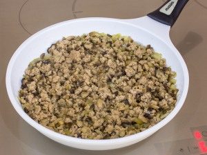 - Agregue la carne picada, agregue un poco de sal y pimienta, freír, revolviendo hasta que esté cocido (todo líquido debe evaporarse)