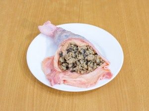 - Rellene la piel preparada con carne picada fría. Coser los bordes hilo especial o subir.