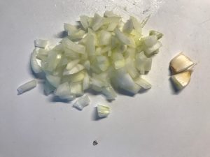 - Cortar un diente de ajo por la mitad, picar finamente la cebolla .