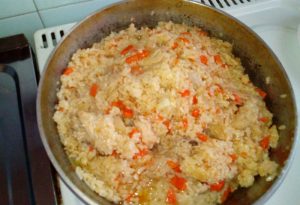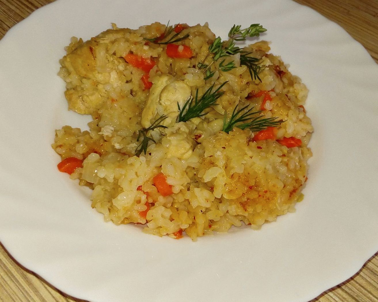 La elección correcta de productos, implementación clara de nuestra receta y después de 1,5 horas, desmenuzable, divinamente delicioso pilaf con pollo en tu escritorio