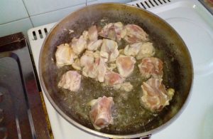 - Lavamos el pollo, lo secamos un poco (el exceso de humedad puede ser remojar con toallas de papel) y cortar.