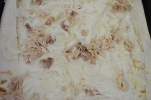 - Espolvorea con pollo picado y cebolla picada.